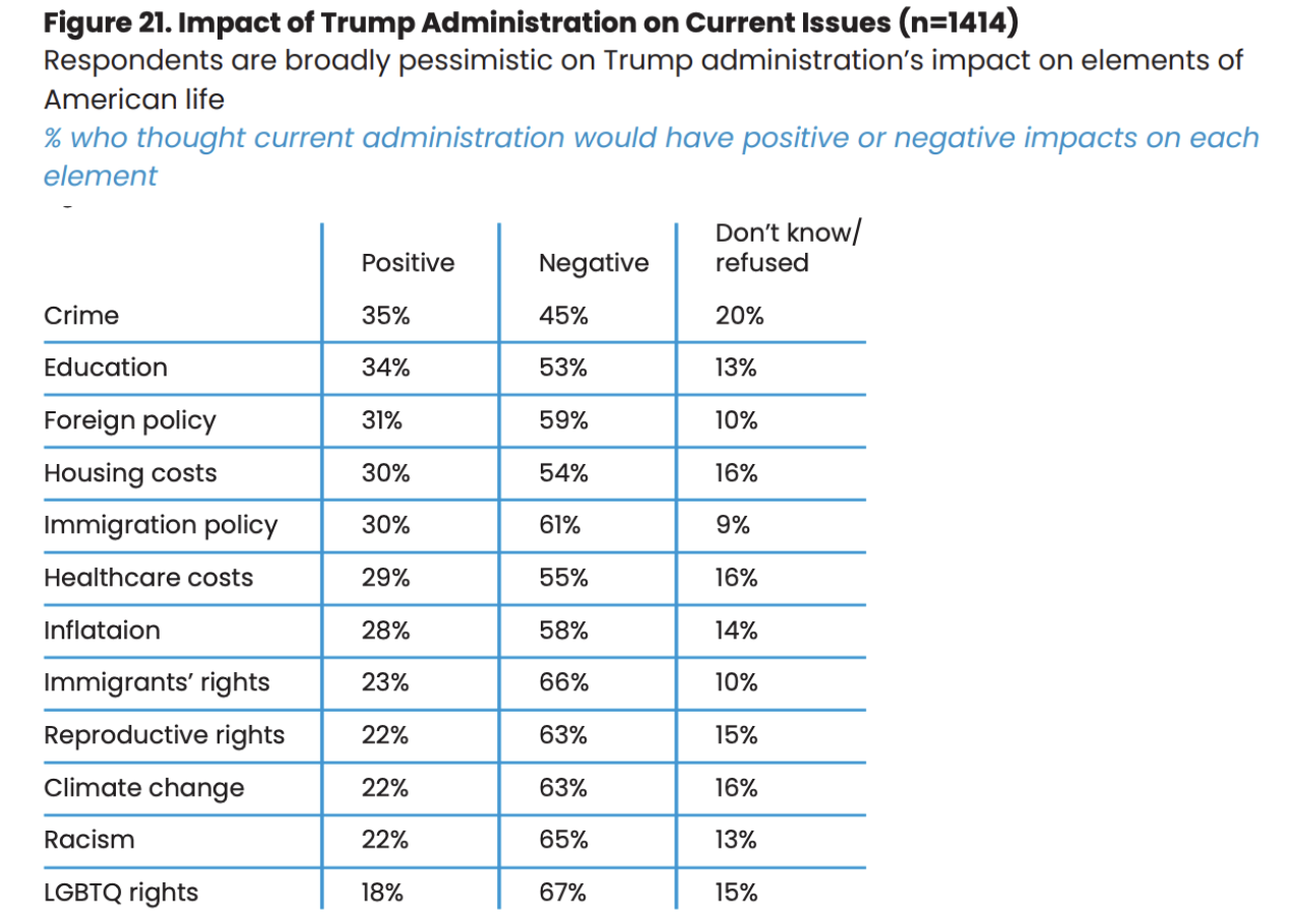 Broad Negative Impact Across Multiple Key Issues (Figure 21).