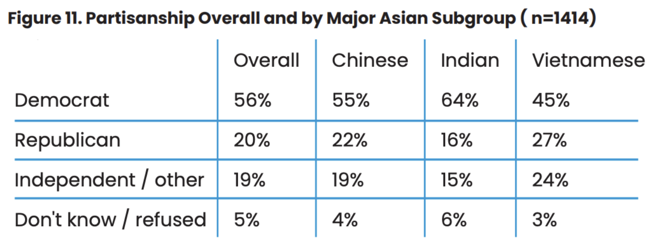 A majority of APIA respondents lean Democratic, but partisan affiliation varies by ethnic subgroup (Figure 11).